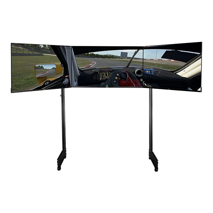 The Next Level Racing Elite Triple Monitor Stand Add On transforms the Elite Freestanding Single Monitor Stand into the ultimate triple screen solution. The unparalleled strength of the aluminum extrusion means it supports three 21″-43″ screens with the included VESA mounts and includes height-adjustable feet, custom cable management clips and a spirit level for the perfect immersive racing simulator cockpit setup.