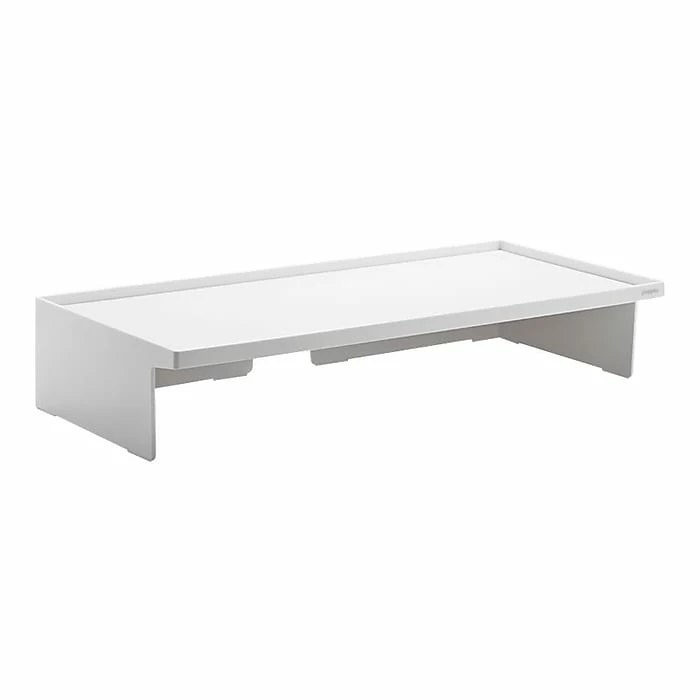 Stay comfortable while working with this monitor riser. The sturdy construction supports up to 60 pounds and raises monitors by 4.1 inches, ideal for improving the ergonomics of your workstation. An integrated cable cutout makes it easy to keep cords under control and reduce clutter, while the elevated surface increases available storage space. This Poppin white monitor riser has a lacquer-like finish that resists scratches and makes workstations look more professional.