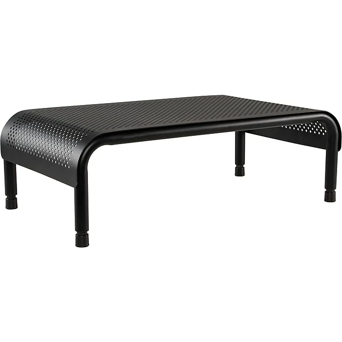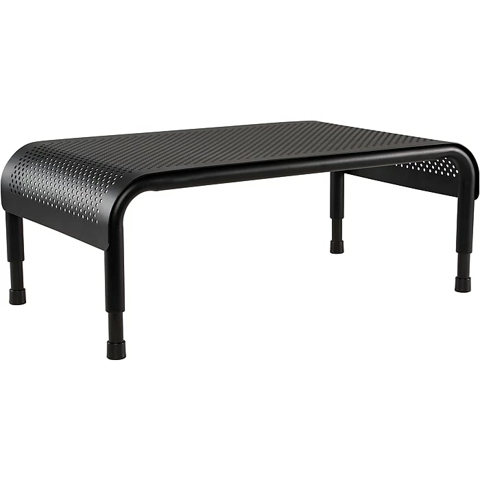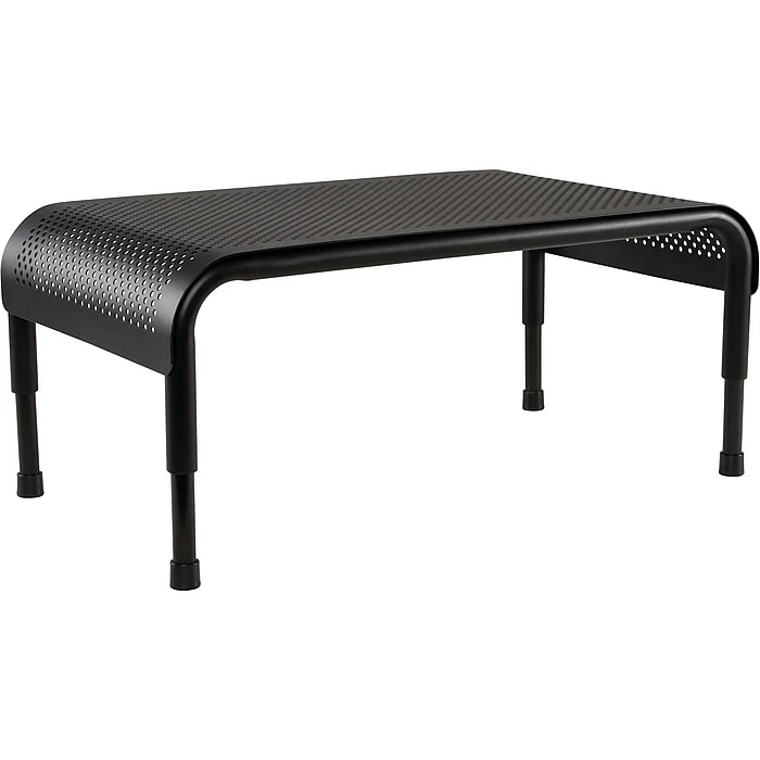 Experience ergonomic comfort when you find the perfect viewing angle with this Staples adjustable steel monitor stand. This stylish stand features four adjustable legs that let you choose between three height levels, making it easy to raise your monitor to the ideal viewing angle. The unique design of this Staples adjustable steel monitor stand supports up to 35 pounds and takes up minimal desk space.