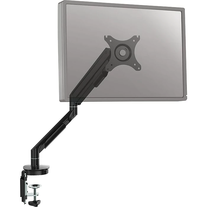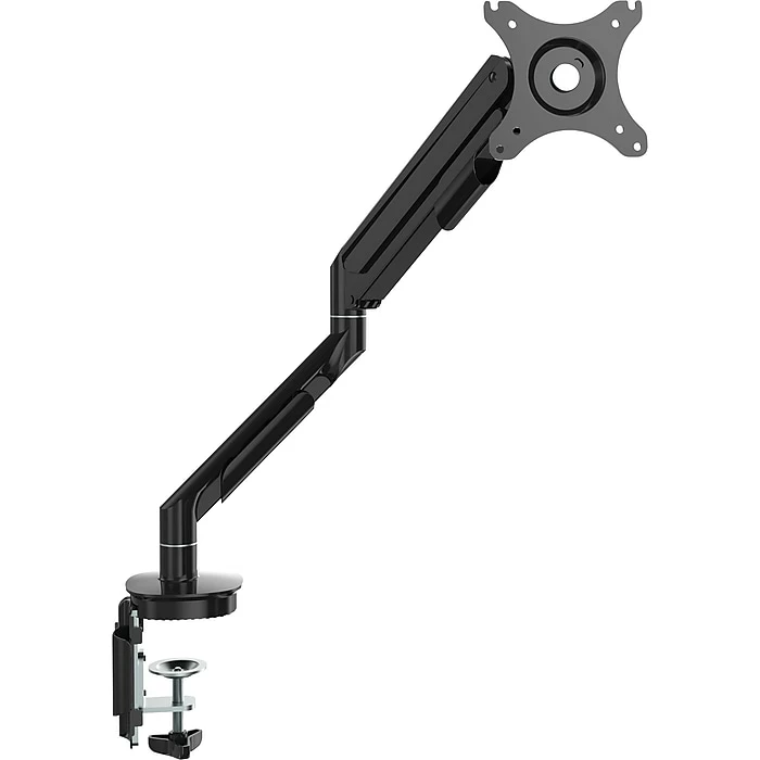 The Staples Single Monitor Arm Mount is ideal for ergonomic positioning of your monitor. The flexible and smooth movements of the monitor arm allow you to easily rotate, tilt, swivel and adjust the height of your monitor for optimal viewing.