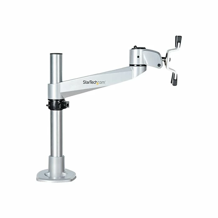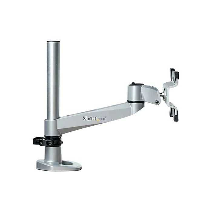 Monitor Mount For up to 34″ VESA Mount, iMac, Apple Cinema and Thunderbolt Displays. Save space with this premium desk-mount monitor arm, by suspending your display above your desk. It supports a monitor up to 34″, with an articulating arm that makes it easy to adjust your screen. Versatile Use Use the single monitor desk mount to mount your VESA mount monitor (75×75, 100×100) up to 34″. You can also mount your Apple Cinema Display, 24-inch iMac or 27-inch iMac, or Thunderbolt Display that came with a removable stand or built-in VESA mount adapter. The attractive silver finish complements Apple displays, making it ideal for customer-facing workstations. Sleek and Stable Aluminum Design Made of aluminum, the heavy-duty monitor arm provides stable support for your display, with a weight capacity of up to 30.9 lb. (14 kg). Enjoy Optimum Viewing The arm extends 8.3″ (210 mm) to allow a wide range of motion. Move the monitor arm effortlessly side to side to adjust your screen position. With its articulating arm, the monitor mount makes it easy to find the right viewing angle. Pan a full +180/-180 degrees left or right and tilt your display +90/-15 degrees to adjust the angle up or down. For landscape or portrait viewing, rotate your display 360 degrees. Height Adjustment Work in comfort. This height adjustable computer monitor arm lets you raise or lower the monitor arm along the pole, with a range of up to 7.87″ (200 mm). Tool-less Assembly Quick slide-and-click connections ensure easy assembly and save time when setting up multiple units. The computer screen mount gives you the option of desk-clamp or grommet-hole mounting. Hardware is included for all mounting options. The TAA compliant ARMPIVOTB2 is backed by a StarTech.com 10-year warranty and free lifetime technical support.
