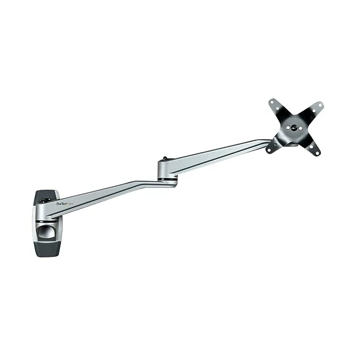 Single-Display Wall Mount Aluminum Tool-less Assembly| For up to 34″ Monitors. Free up space with this wall-mount monitor arm and enjoy optimum viewing with the long dual-swivel extension arm. The premium design ensures smooth, effortless motion and makes it easy to re-position your display, to work in comfort or collaborate with others. The attractive silver finish complements your decor. The wall-mount system is ideal for business, healthcare, financial or other settings, where you may want to share your screen, or for customer-facing interactive displays. Adjust the Dual-Swivel Arm with Ease The wall-mount monitor arm extends a full 20.4″ (52 cm) and has three swivel points, offering an extended range of motion. Move the dual-swivel arms left or right, to change your screen position. You can also adjust the swivel tension. Durable and Stable Construction The robust aluminum design provides a stable wall-mount for your computer monitor or flat-screen TV up to 34″. It’s ideal for touch-screen stability. The universal display wall mount supports VESA mount monitors (75×75, 100×100) up to 30.9 lb. (14 kg) in weight. Adjust your Viewing Angle Share your screen with ease. The display wall mount offers a full +180-degree/-180-degree pan, to move your screen left or right. It tilts freely +90/-15-degrees, to adjust the angle up or down. Rotate your screen for landscape or portrait viewing. Low-Profile Design Push the swivel arm back to the wall, so your monitor sits just 5″ (129 mm) from the wall when not in use. Tool-less Assembly The quick slide-and-click connections make the monitor wall mount easy to assemble and saves time when setting up multiple units. The TAA compliant ARMWALLDSLP is backed by a StarTech.com 10-year warranty and free lifetime technical support.