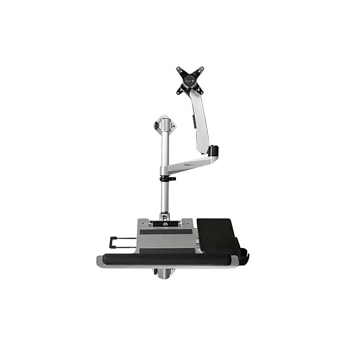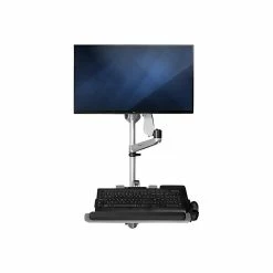 Increase your productivity, with a workstation that fits the way you work. Designed for a wide range of motion, this wall-mounted computer workstation is easily adjustable with independent arms for your monitor and keyboard. Move the wall-mounted sit-stand desk into position to work. Then push it back against the wall when not in use, folding the arms close to the wall. It’s perfect for use in hospitals, clinics, warehouses, and other space-limited areas. Extend the articulating monitor arm up to 25.6″ (65 cm) from the wall. For ideal positioning, tilt or swivel your monitor, or rotate 360 degrees. The sit-stand workstation supports a VESA mount (75×75, 100×100) monitor up to 30″, with a maximum weight of 19.8 lb. (9 kg). This wall-mounted height-adjustable desk enables a wide range of users to work in comfort. Adjust the height of both arms along the pole up to 17.5″ (44.5 cm), plus the spring monitor arm has a height adjustment range of 10.6″ (27 cm). Place your keyboard where you need it, with an independent keyboard tray that extends up to 30.9″ (78.4 cm) from the wall. Tilt the keyboard back to make sure your wrists are in a neutral position while typing. Place your mouse in the holder when not in use. The modular design, with quick slide-and-click connections, makes installation easy and saves time when setting up multiple units.