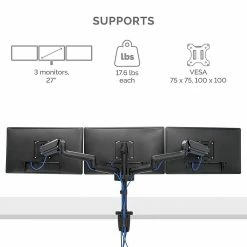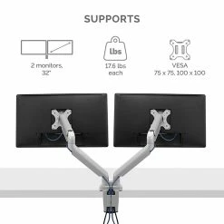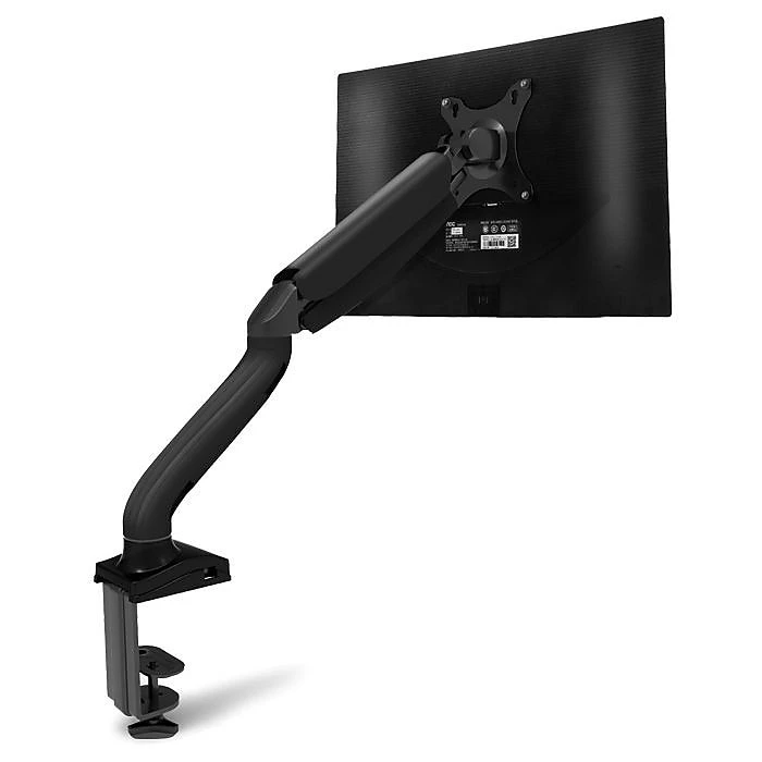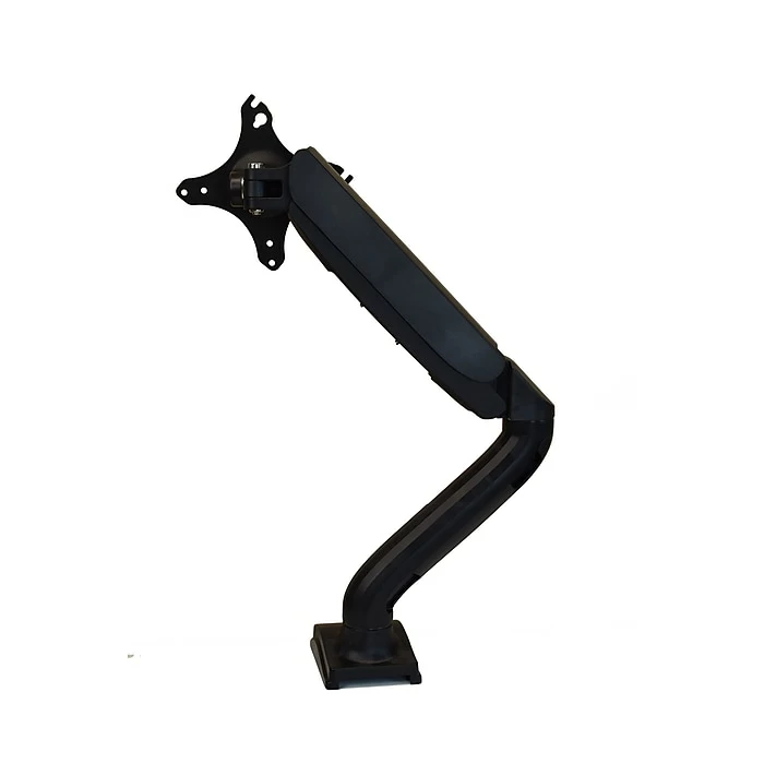 Perfectly position monitors at the optimal viewing angle with this durable, gas-spring Single Monitor Mount.EFFECTIVE Swivel, pan, tilt and raise monitors to a position that’s right for you. Adjustable tension knob accomodated different monitor weights.EASY INSTALLATION: Securely connects to your desk via simple screw clamp or grommet mount.Your back, neck & shoulders will thank you!
