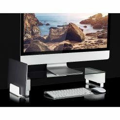 Mount-It! Glass Computer Monitor Stand With Brushed Aluminum Legs, 66 Lbs. Capacity (MI-7264)